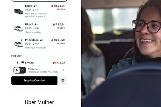 Outra alternativa é solicitar diretamente a categoria Uber Mulher na tela inicial do aplicativo, disponível para viagens imediatas durante o dia. Se não houver motorista disponível rapidamente, a usuária poderá optar por continuar aguardando ou aceitar a corrida com outro condutor.